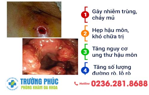 Gây ra nhiều lỗ rò phức tạp: Các vết loét bị lở và lan rộng, tình trạng viêm nhiễm trở nên nặng hơn tạo ra thêm nhiều lỗ rò nguy hiểm.