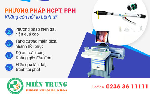 Tại Phòng Khám Đa Khoa Miền Trung, đối với bệnh nhân bị trĩ nặng độ 3, độ 4, phương pháp HCPT và PPH được sử dụng để đẩy lùi bệnh trĩ.